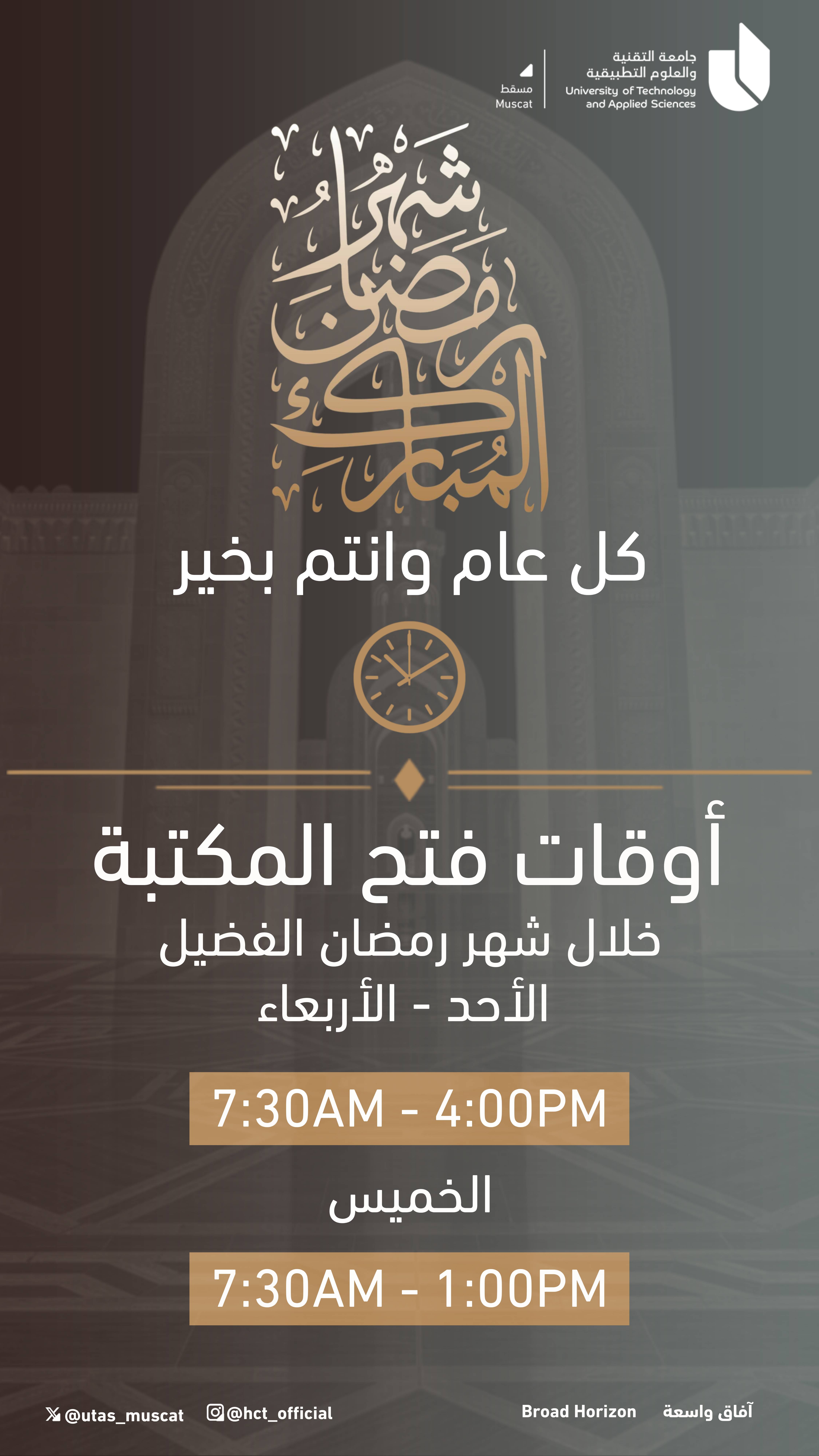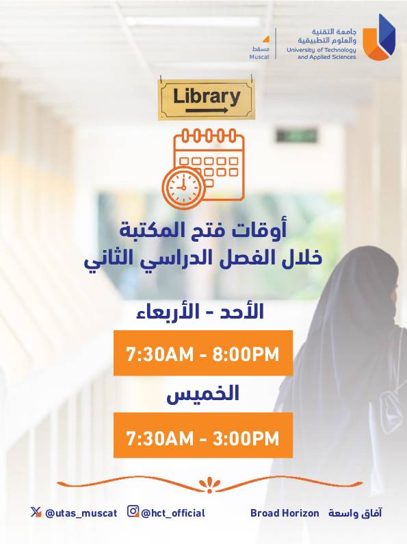 الأحد - الأربعاء: 7:30 صباحًا - 8:00 مساءً